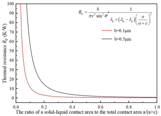 The relationship between the thermal resistance of micro-nano structures on the superhydrophobic surface and the percentage of a solid–liquid contact surface.