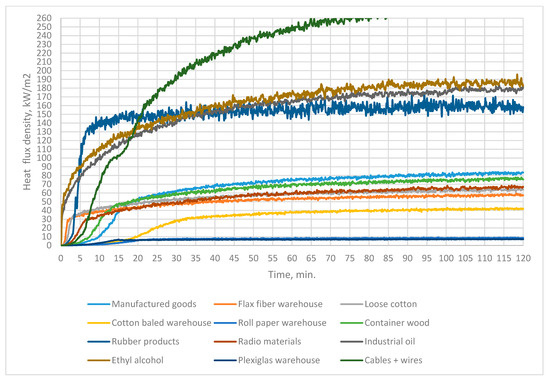 - heat flux 20 kW/m2, 30 kW/m2, 40 kW/m2, and 50 kW/m2;