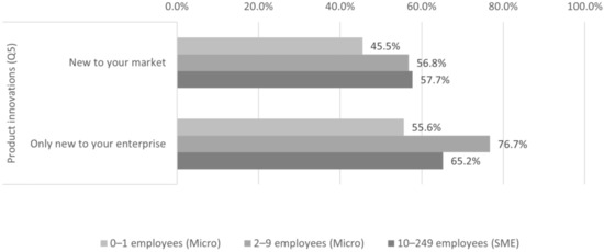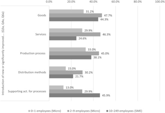 Figure 2). More enterprises have produced new or significantly improved goods among SMEs (44.3%) and even more among micro-enterprises with 2–9 employees (47.7%) than micro-enterprises with 0–1 employee (31.2%; χ