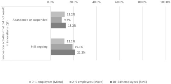 18], we propose H5: micro-enterprises are more likely than SMEs to have had innovation activities that did not result in product or process innovations because the activities were abandoned or suspended before competition (H5a) or were still ongoing (H5b).