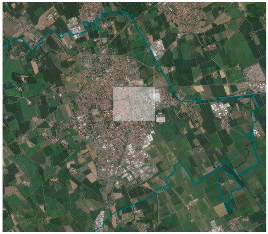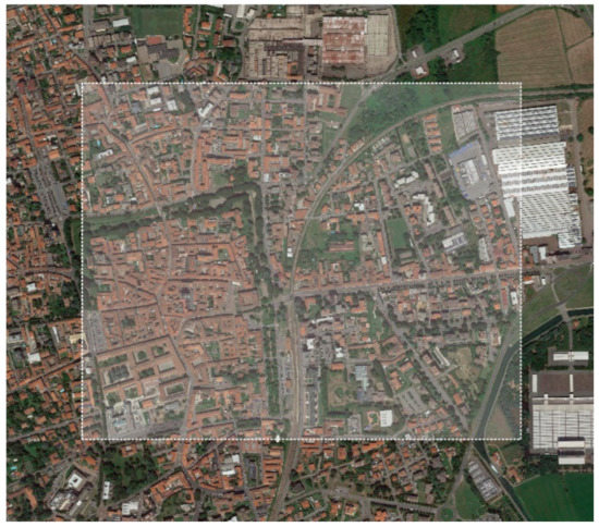 In Abbiategrasso, we considered the north-east quadrant of the city, including the urban fabric of the historic center (Figure 3).