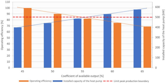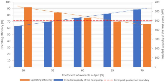 On the basis of the above, the optimization of heat production for Option 1 was assessed by comparing the heat production using the coefficient of available output of the heat pump (see Figure 5).
