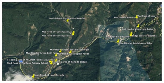 Taiwan, however, is an island symbiotic with disasters, and Indigenous tribes are often faced with unending difficulties and challenges because of natural and human-made calamities. For example, in June 2019, the tribe was attacked by a heavy monsoon downpour; in less than two days, it received more than 700 mm of rainfall, resulting in soil slippages and landslides in many tribal areas. Earth and rock also covered two of the seven newly excavated ecological rehabilitation ponds initially planned as an ecological education park. Much soil erosion, flooding, and destruction of roads caused tribal traffic blockages, loss of crops, and other negative impacts (see Figure 2). This, coupled with the media’s actions that reported the disaster for several days, affected the Indigenous community development and indirectly stigmatized the tribe’s destination image. Taiwan is located in the subtropical region along the typhoon approach route; there will be more severe tests in the future during periods of extreme climate change. In addition, most Indigenous people in Taiwan living in geographically high-risk areas suffer vulnerabilities to the risks of climate change [45], thus they will require more adaptability to disasters and more resilient abilities. In a nutshell, understanding Indigenous resilience mechanisms can enhance disaster relief knowledge and provide more guidance to local governments and social organizations such as NGOs and practitioners [45].