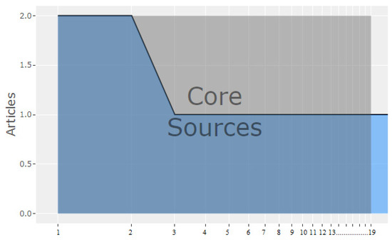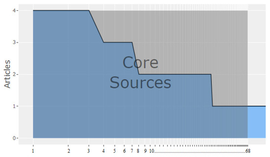 For the topic of OC impact, according to Figure 11, there are 68 sources included in the core area. Table 6 shows that among these, in top 20, the majority represents scientific journals and only one is a conference proceedings. According to Bradford’s law, for set (b), all 68 sources published a third of the documents included in the studied collection.