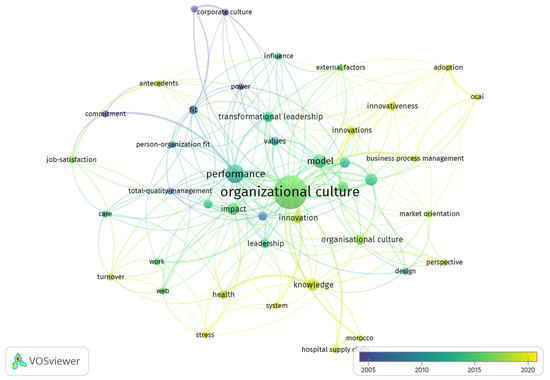 Well-conducted bibliometric studies can build a solid foundation for advancing a field in new, meaningful ways for general knowledge—enables and empowers researchers to (1) obtain a unique overview, (2) identify gaps in what is known, (3) obtain new ideas that are worth investigating, and (4) properly position the intended contributions in connection with a specific field. All these listed elements are, moreover, arguments in favor of the bibliometric analysis use in the present research. The main objective is to discover the existing legitimacies between the elements that compose and determine OC at the level of an organization as a whole, and also between the concept itself and the elements that are being influenced by it. Some of those elements are directly connected to the concept of sustainability. So, in this paper we provide a closer examination of the relationship between organizational culture and sustainability, which in fact is a theme tangentially treated in the literature. In some recent researches, this relationship can be described by referring to aspects indirectly connecting the two concepts, such as: innovation or development according to some authors [8], or to corporate social responsibility [9] or even to competitive advantage [10], knowledge management [11] and to leadership [12]. In this way, one can in the end try to explain if it is possible for organizations to become more sustainable through culture and more specifically, through approaching elements characteristic to organizational or corporate culture.