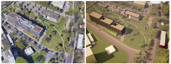 The features of the visual model have no influence on the acoustic model except that both models have the same dimensions and are referenced to the same point of origin and orientation. The process followed by the authors to produce the urban visualization of the IHTApark in its full features follows a common workflow among architects, as it is described by the authors []. In the next paragraphs, a detailed description of the case study is provided, following (Figure 11):