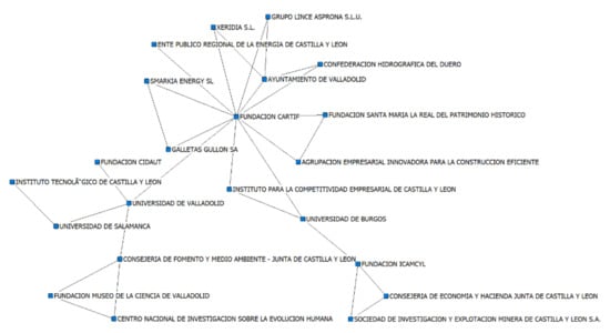 In order to have a picture of the regional network of Aragón, Figure 2 presents the graphical representation of the network, including only those entities with a degree higher than one.