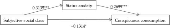 | Subjective social class | −0.2799 | −5.0803 *** | 0.0000 | ||||