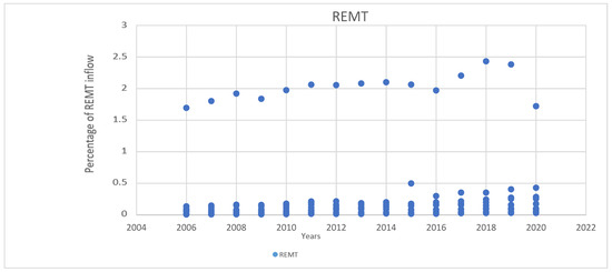 - REMTi.t = Remittance inflow received (at current US dollars).