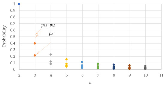 By generalizing, we have, for any n number of ramps, the following probability expressions.