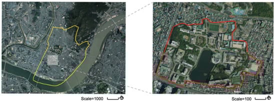 Due to rapid industrial development and increasing population density, cities are facing problems such as having a high building coverage ratio and large traffic volumes. These problems increase energy consumption and artificial heat, forming a unique climate called an urban heat island (UHI) []. The UHI effect is a phenomenon in which urban temperatures are higher than ambient temperatures, and photochemical reactions of pollutants form heat waves that make them vulnerable to the thermal environment [,,,]. If this phenomenon persists, it will promote thermal stress among urban residents, resulting in discomfort, as well as an increase in the mortality rates among the elderly and urban poor [,]. As urban areas continue to expand as the population increases, the UHI effect is accelerating; accordingly, research is being conducted to quantify and improve urban thermal environments [,,,,,,].