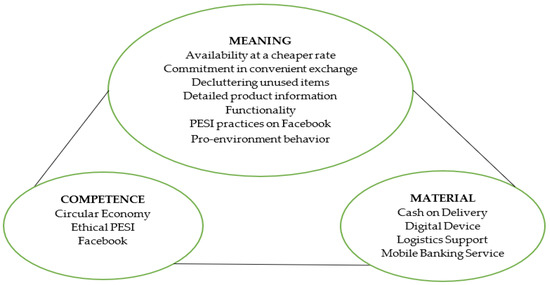 Previous pieces of literature on SPT focused on historical narratives and technological developments [70], social relations [71], consumption behavior [27], green practice [72], and individual circumstances. This study adopted this theory in analyzing the ethical PESI practices of Facebook users of Sweden and Bangladesh in achieving a circular economy. A detailed discussion on SPT elements is provided below.