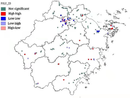 LISA cluster diagram of supply chain innovation enterprises in Zhejiang Province.