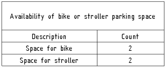 Schedule of spaces for bikes and strollers.