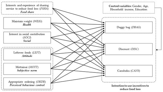 Based on existing analytical models such as consumer models and sharing service models, this study analyzes the feasibility, future potential, and effect of our newly proposed service by assessing consumers’ awareness of incentives and food loss via online and smartphone surveys. We integrated and extended the existing models for our analysis, as shown in Figure 2.