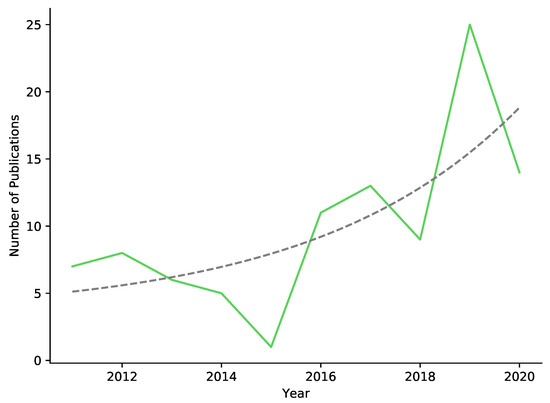 This section presents a comprehensive bibliographic analysis of the corpus of reviewed papers. We start our analysis by inspecting the temporal evolution of the publication activity. Figure 3 depicts the number of published papers which have been classified as relevant for each year between 2011 and 2020.