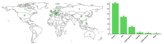 The left-handside of Figure 5 depicts a geographic analysis of the reviewed publications.