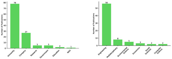 In order to get a precise picture of the research community in the field of sustainability in tunneling, we analyzed the organizations the authors are affiliated with. The left-hand side of Figure 6 shows the number of publications for different organization types.