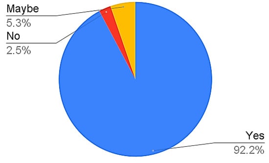 Next, Figure 4 shows the result of long-term entrepreneurship intention. In particular, 92.2% of university students had the intention of long-term entrepreneurship. Considering the aforementioned results, a pattern in the long term can be appreciated; that is, there were quite a few doubts regarding entrepreneurship in the short and medium term, and students preferred long-term analysis and planning.