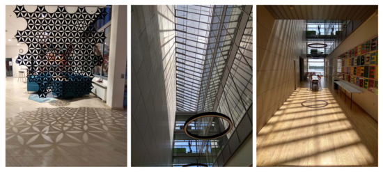 The element of light has also been found to be essential in designing spaces for children. In some cases, the windows are designed to offer the opportunity of interacting with light. In other cases, “light chimneys“ are used in order to draw an even larger amount of natural light in the interior space [29]. In the Educational Centre En El Chaparral in Granada, designed by the architect Alejandro Muñoz Miranda, natural light was the core element around which the entire design concept unfolded [30].