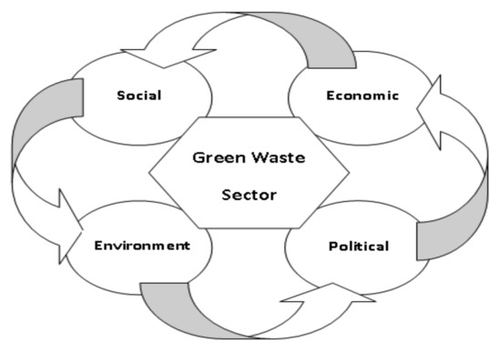 Based on the CE paradigm, the waste sector can combine all departments, enabling them to become involved in the collection, transportation, and final disposal of MSW. The renewable energy, electricity, and compost generated from the reuse of solid waste reduces the demand for resources and minimizes GHG release indirectly [41,42,43]. Due to resource scarcity, the benefits of energy generation from waste are an incentive to develop the waste sector.