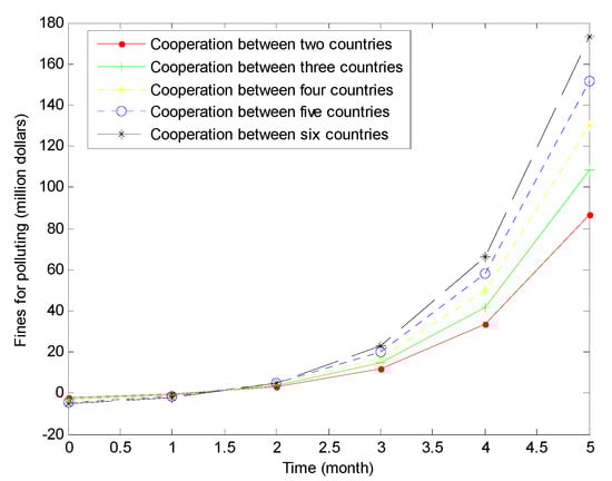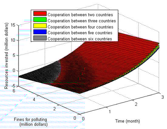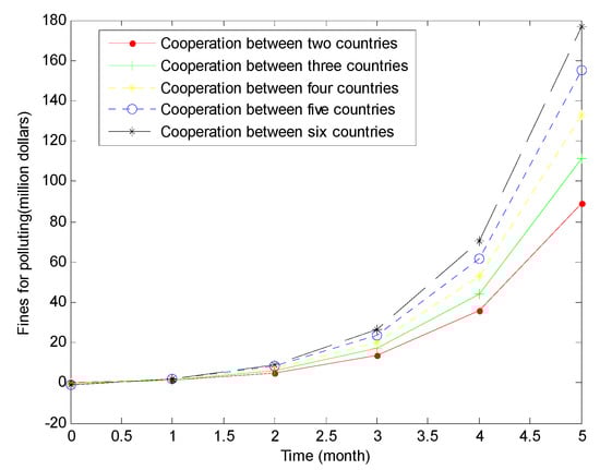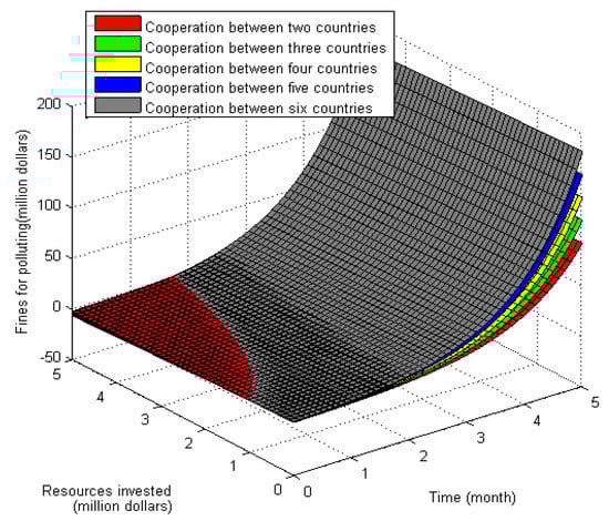 According to the above, under the compensation model, all fines imposed on enterprises that cause ecological damage are used for pollution control. When fines are higher, more pollution control is invested. In this case, it is easier to restore the ecological environment. The more countries in the LMRB participate in cooperation to control the pollution, habitat destruction and other human impacts, the better the ecological environment will recover [52].