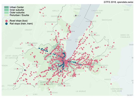 Spatial structure of the public transport offer across the Greater Geneva Area.