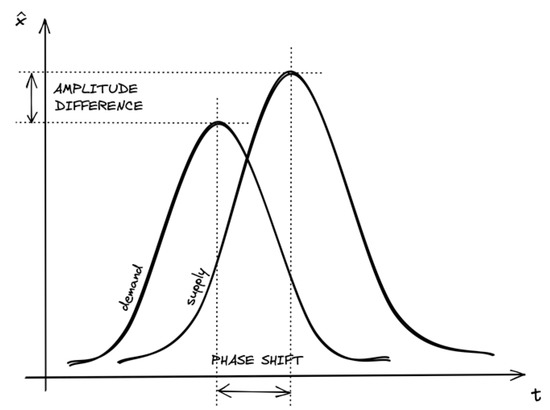 Therefore, the supply-demand coefficient of variation is computed as the normalized distance between the reduced curves of supply and demand at time t (see Equation (5)). This method is often used in the literature to evaluate the error between measured and predicted data. A positive coefficient means an oversupply with respect to demand, and a negative one means an undersupply.