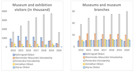 Number of visitors to museums and exhibitions. Source: calculated by the authors based on data [68,75,76,77].