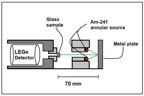 The of glass samples was determined employing X-ray fluorescent equipment (XRF). The high-purity metal plates were composed of the following elements: Nb, Mo, Sn and Pd (see Figure 3). The metal plates are detailed in Table 1.
