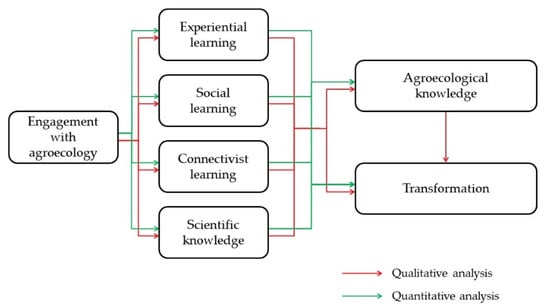 The transformative power of agroecology for social groups and food systems is well documented in the literature. A growing body of high-quality research focuses on the transformative nature of agroecology, affording insights into different systemic levels. For instance, recent work indicates that agroecology paves the way for the transformation of rural communities [63], urban farming systems [64], and national agri-food systems [65]. However, such a systemic transformation requires the transformation of the different units that form the system. Gliessman [66] terms that metamorphosis “the fifth level of food system change”, i.e., a paradigm shift that acknowledges the interdependence between humans and the environment and challenges belief models, (re)sets ethical priorities, and reorganizes value systems. Farmers and scientists practicing agroecology transform their identities by engaging with the praxis of agroecology [5] and by developing knowledge through that praxis [67]. Nevertheless, research has not yet addressed how these actors construct agroecological knowledge and whether this knowledge has a transformative character.