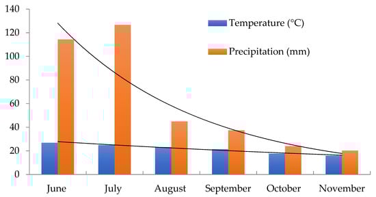 The trial location’s (Rawalakot, Azad Jammu and Kashmir, Pakistan) meteorological characteristics (temperature and precipitation) over crop growing seasons, ( data with exponential trend lines).