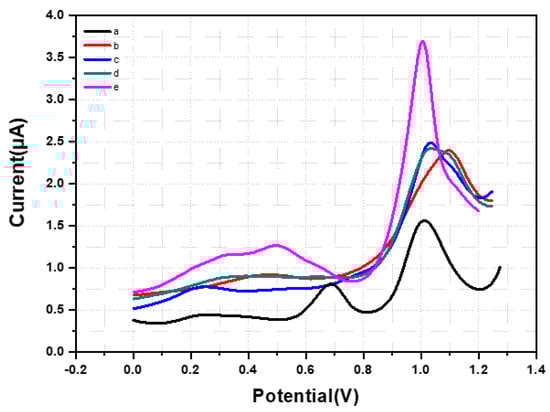 After the dipping process in the real wastewater samples, the ss-DNA/cysteine/Au-modified electrode based on single-stranded DNA was transferred to the target DNA solution, and the resulting DPV curves are illustrated in