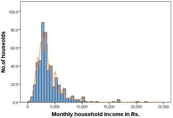 Monthly income of the sampled households.