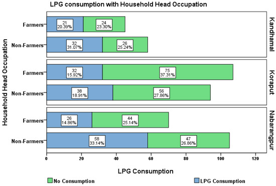 Percentage of household’s choice of LPG by occupation in the three districts.