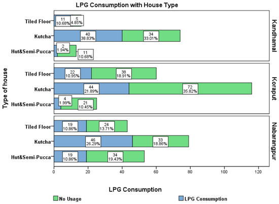 Percentage of households’ choice of LPG by type of flooring in the three districts.