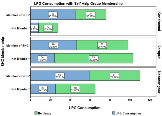Percentage of households’ choice of LPG by membership in SHGs in the three districts.