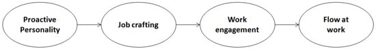 However, HRM practices are not always able to adequately meet each employee’s needs. Therefore, employees should motivate themselves by managing their personal resources to meet organizational demands. Among personal resources, proactivity may be playing an even more important role in recent times [7]. Consequently, the present study focuses on how and why proactive personality may promote job crafting, work engagement, and, flow at work. In other words, the present study aims to explain the positive effects of proactive personality on flow at work through sequential mediation via job crafting and work engagement. We expected that proactive people would model their work (job crafting) and feel fully immersed in their work (work engagement) in order to increase their state of harmony and control over their work (flow at work).