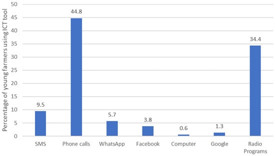 ICTs provide record-keeping tools, enable the promotion of agriculture among the youth and help create virtual markets for agricultural products. Adegbidi, Mensah, Vidogbena, and Agossou [4] reveal that 41% of rice farmers in Benin use mobile phones for sharing and accessing information. Sangingi [5] also demonstrates that in Kenya, the use of the mobile phone application called Icow increased milk production by 56%, incomes by 40%, and influenced the increase in subscription rates to the agricultural market information application mFarm by over 7000 farmers. Wossen et al. [6] establish that the Nigerian e-voucher based input subsidy program improved productivity and welfare outcomes of smallholders.