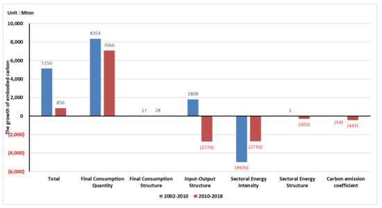 The SDA decomposition result of embodied carbon in 2002–2010 and 2010–2018.