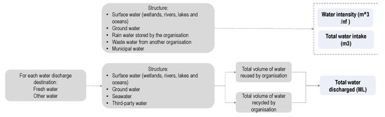 - STANDARD, G.R.I. GRI-303-Water-2018. Available online: https://www.globalreporting.org/standards/media/1909/gri-303-water-and-effluents-2018.pdf (accessed on 23 December 2021).
