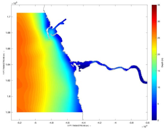 In this work, given that the average water depth in Douro Estuary (≈16 m) is well above 10 m, a constant value of 0.015 was adopted for the Manning coefficient [36].