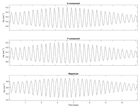Similarly, Figure A2 shows the flow velocity for a specific location of Area B, where the TSE reaches it maximum value. In this case, tidal velocities ranged from 0.2 to 0.76 m/s during the period of study.