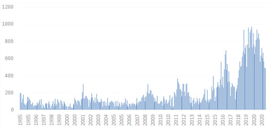 Economic policy uncertainty (EPU) currently focuses on three methods. One is based on the measurement of news media and network information. Choosing influential newspapers, per month for each paper, we conducted a search using search words related to economy and policy uncertainty according to media reports in the word frequency statistics, as well as to the expected changes to the tax provisions of macroeconomic prediction deviation of three indicators to measure the uncertainty of economic policy and standardized processing and build up economic policy uncertainty index [1,28,29]. The second is to measure whether there is uncertainty based on whether there is a change of top government officials [2,3]. The third is to consider if the uncertainty of macroeconomic and financial markets is likely to produce a wide range of influence; some scholars will predict variability or volatility as the uncertainty, using the volatility of economic and financial variables, the changes in stock market returns, or profits level of cross-sectional discrete degree of uncertainty as the proxy variable to indirectly measure economic policy uncertainty [30,31].