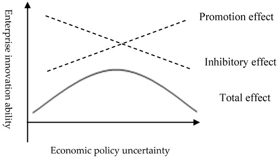 Some authors believed that economic policy uncertainty and enterprise innovation are jointly affected by “promotional effects” and “inhibition effects”. Liu and Huang examined panel data of listed companies in China’s strategic emerging industries from 2013 to 2018 and found that there is a U-shaped relationship between economic policy uncertainty and corporate innovation capabilities, and government innovation preferences have a negative regulatory effect [26].