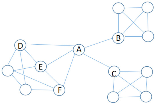 From Figure 3, the entire network is divided into three community structures; the two arms of AB and AC are the key to the whole network edge and are also important links between the three community structures as A, B, and C have weak relations. The network can provide other offices with a community structure of the internal office without access to official economic policy or experience. Among them, place A is a significant area connecting the entire network. If place A does not exist, the entire network will be disconnected. Therefore, the weak relationship of A is stronger. The transfer of officials through this place can connect the entire network, and there are many channels for obtaining information, which affects the transfer of officials and information transmission of the entire network. In addition, location E is located in the center of the community structure, with a high clustering coefficient and a relatively strong relationship. Officials who pass through the location are transferred more frequently, and economic policies change more frequently.