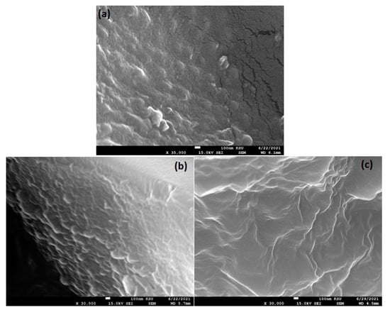 SEM images of (a) UTSIF, (b) NASIF, and (c) MB-saturated NASIF.
