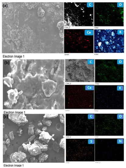 Elemental mapping analysis for (a) UTSIF, (b) NASIF, and (c) MB-saturated NASIF.