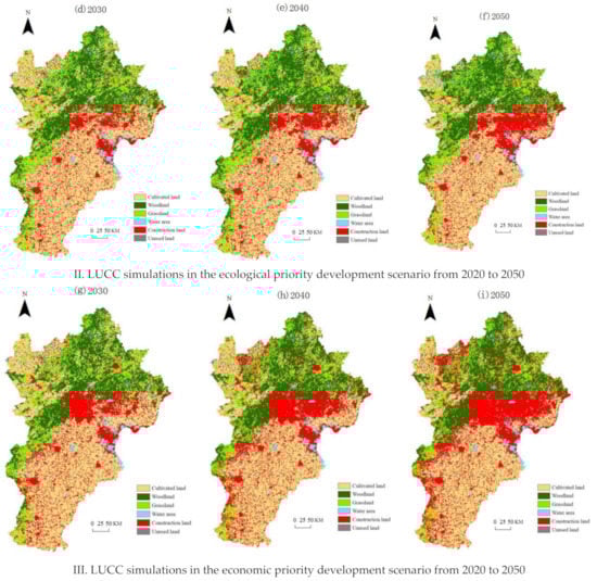 3.3.2. LUCC Simulation Results with Multiple Objectives from 2020 to 2050