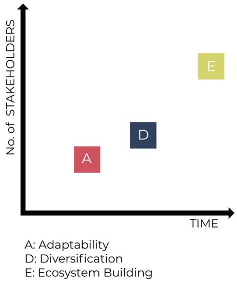 For Keck and Sakdapolrak [53], adaptability (adaptive capacity) constitutes a dimension of social resilience: the ability to learn from past experiences and adjust to future challenges in everyday life. Considered as such, adaptability represents a dynamic quality empowering social system—including civic initiatives supporting social innovation—to respond and cope with crises as a normal rather than exceptional condition. In an urban environment, together with the transformative dimension of social resilience, adaptability proposes new scenarios for social and spatial development. In this sense, adaptability can be seen as a dimension of the type of open urbanism envisioned by Richard Sennett [54] and meant to represent a flexible environment, not over-determined or fully defined a priori. This kind of openness nurtures social innovation and leads to new ways of considering the city and the challenges society is called to face, allowing for quick and speedy reactions.